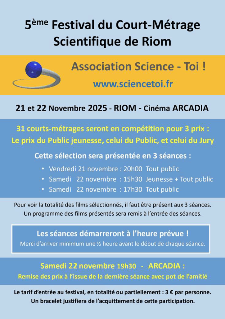 Le Festival INTERNATIONAL du Court Métrage Scientifique de Riom
